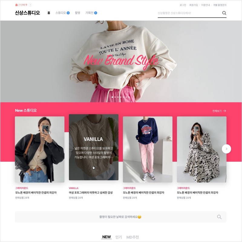 신상스튜디오 ( 신상마켓 ) 조회수 5,994 작성 2021-05-26 12:02:36 https://sinsangstudio.com 신상마켓에서 동대문 업체(협력사) 분들을 위한 픽업부터 사진촬영, 상품 등록까지 한번에 신상스튜디오에서 진행을 한다. 0 share 목록 보기 more