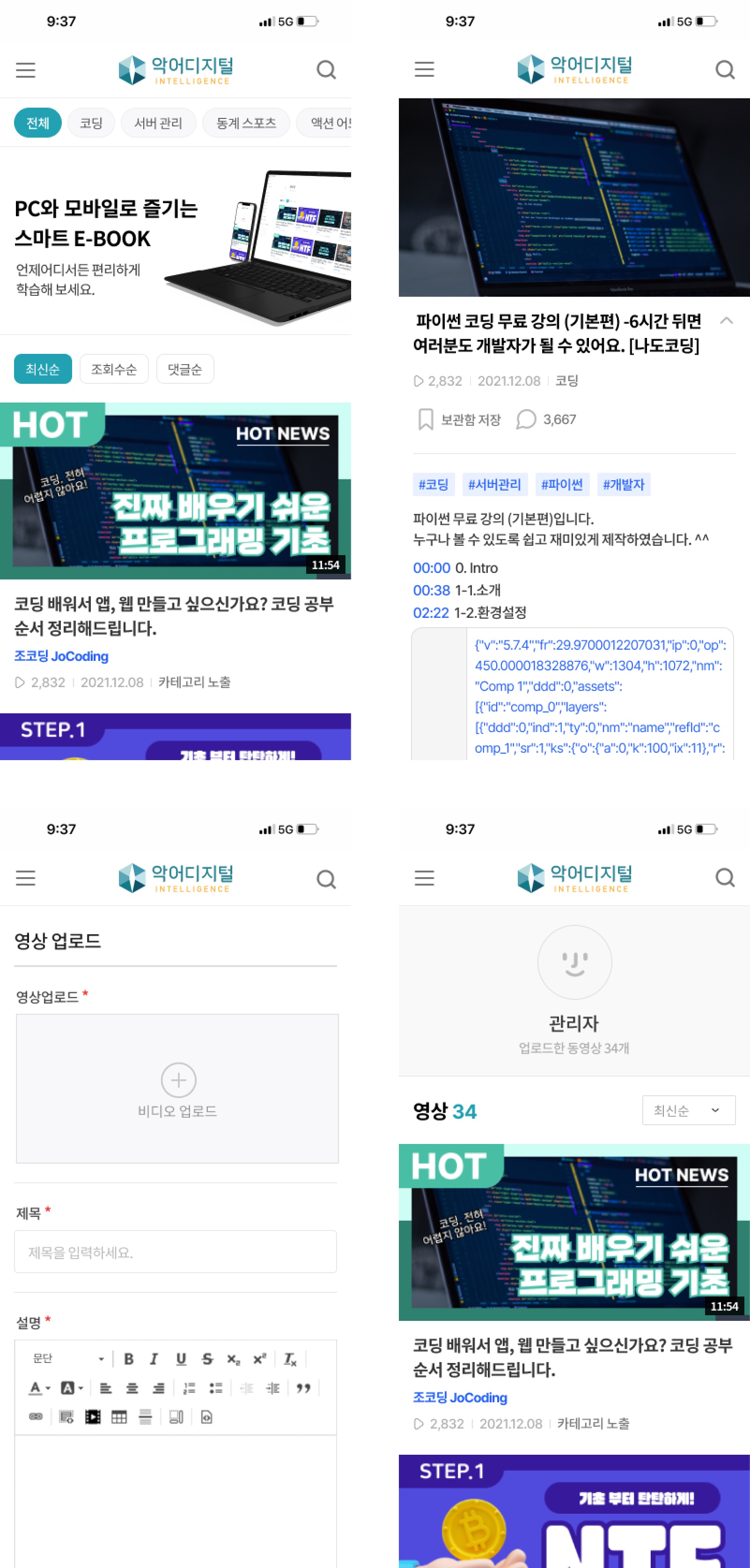2. Player 와 비디오 리스트 및 플래폼을 Youtube 와 유사 하게 제작은 되었지만 실제 인트라넷 메뉴는 악어디지털 업체 성향에 맞게 변경됨
